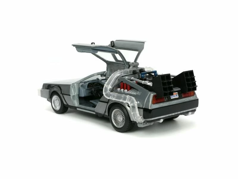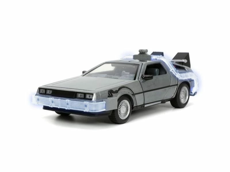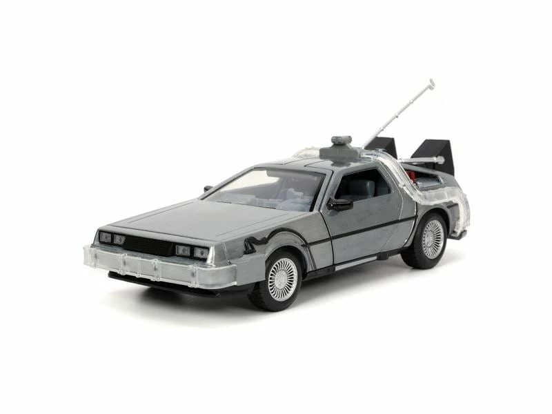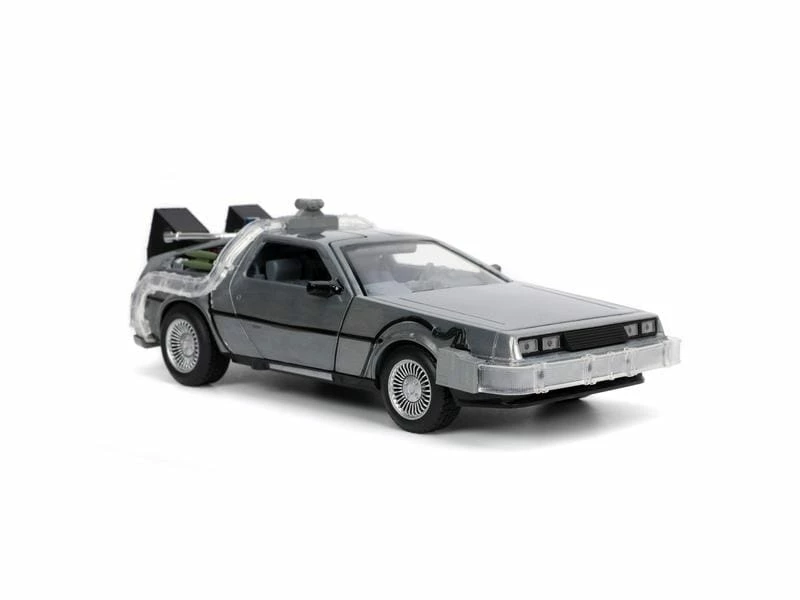 Machen Sie eine Reise in die Vergangenheit mit einem der kultigsten Fahrzeuge der Hollywood Rides-Reihe: der Time Maschine aus Zurück in die Zukunft (1989). Mit seiner Zinkdruckgusskarosserie, den Gummireifen und der Lichtfunktion ist dieses Fahrzeug im Massstab 1:24 ein Muss in jeder Sammlung.