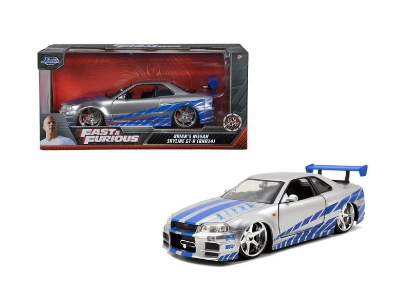 Helfen Sie Dom und seiner Crew bei der Fortsetzung ihrer weltweiten Erfolge im unaufhaltsamen Franchise, das auf Geschwindigkeit aufgebaut ist. Die Fahrzeuge sind mit Stilmitteln direkt aus den Filmen ausgestattet und werden den Ansprüchen von Fans und Sammlern gleichermassen gerecht. Sammeln Sie sie alle, um Ihr eigenes schnelles Team zusammenzustellen und den Tag zu retten. Der 2002 Nissan Skyline im Massstab 1:24 ist aus Zinkdruckguss und verfügt über zu öffnende Türen, Kofferraum und Motorhaube.