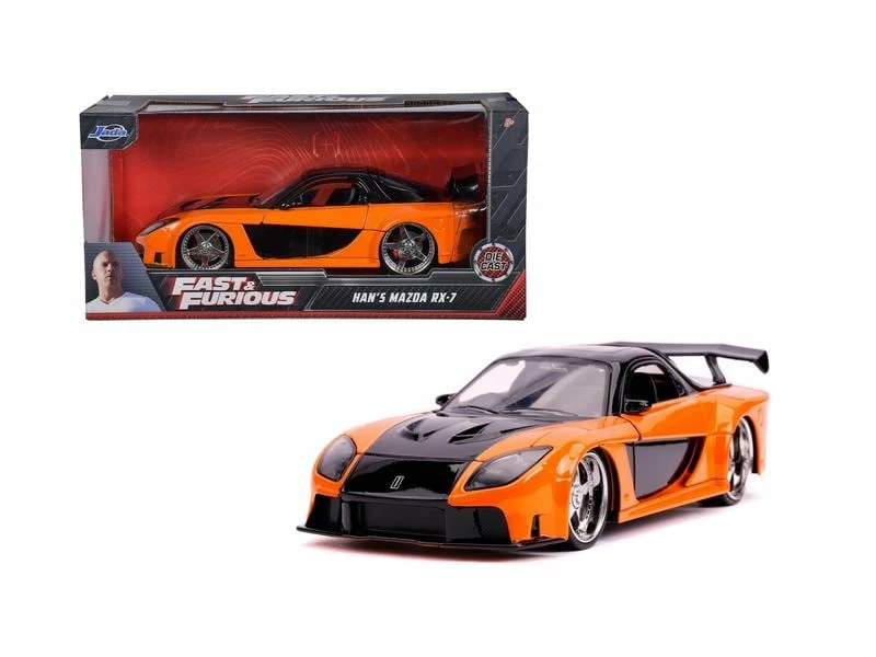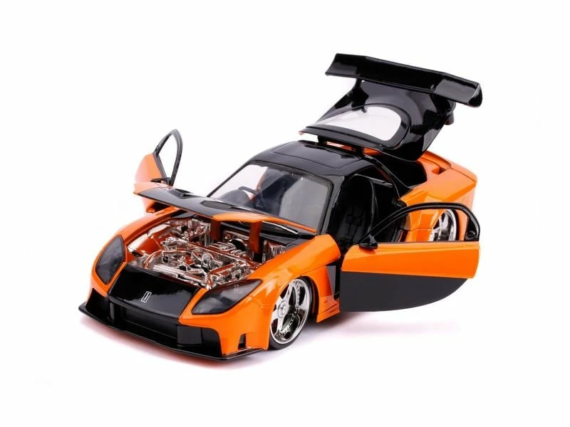 Helfen Sie Dom und seiner Crew bei der Fortsetzung ihrer weltweiten Erfolge im unaufhaltsamen Franchise, das auf Geschwindigkeit aufgebaut ist. Die Fahrzeuge sind mit Stilmitteln direkt aus den Filmen ausgestattet und werden den Ansprüchen von Fans und Sammlern gleichermassen gerecht. Sammeln Sie sie alle, um Ihr eigenes schnelles Team zusammenzustellen und den Tag zu retten. Der Mazda RX-7 im Massstab ist aus Zinkdruckguss und verfügt über zu öffnende Türen und Motorhaube.