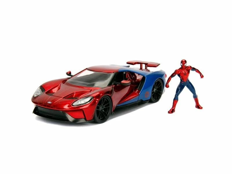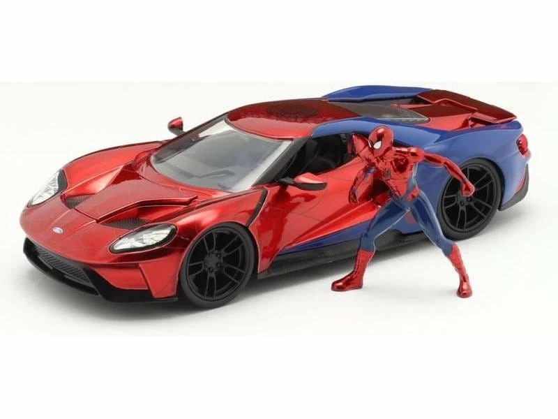 Dieser 2017 Ford GT verfügt über eine zu öffnende Motorhaube, Türen und einen verstellbaren Heckspoiler, dessen Design vom freundlichen Spider-Man inspiriert ist. Zu diesem Fahrzeug gehört auch eine 7-Zoll-Sammelfigur aus Zinkdruckguss, die in jeder Fahrzeugsammlung ein Hingucker ist.
